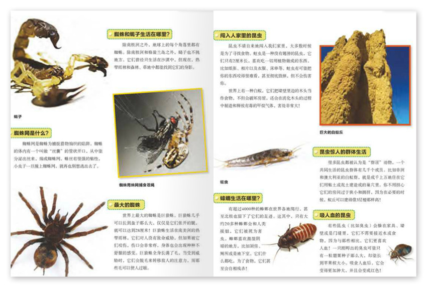 瞬間抓拍、超級震撼的獨特照片,透過孩子熟悉的事物傳遞難得一見的細節:你見過蒼蠅,但你見過放大好幾百倍、頭上長著無數復眼和絨毛的蒼蠅嗎?你被蚊子叮過,但你見過蚊子的吸血管(嘴)把血吸上來一半的場景嗎?你見過蜘蛛抱著獵物在網中掙扎的樣子嗎?