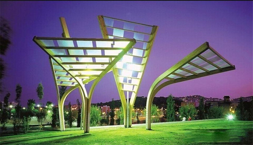 不同的顏色也被用來代表一天的時間,一個網格的顏色逐漸變暗來說明從白天到夜晚的轉變。穿過隧道,天空呈現出一種美麗的漸變,顏色從淺到深,不時流動。通過五顏六色的時間旅行,裝置使人感受到在整個大氣中微妙的變化。一條長方形的隧道從中間穿過,有長凳供參觀者坐下并沉浸在作品中。