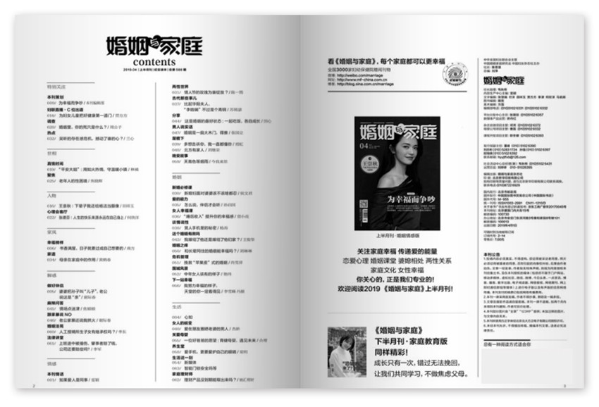 《婚姻與家庭》(半月刊)創(chuàng)刊于1985年,多年來雜志內(nèi)容及形式方面與時俱進,并以其形式和內(nèi)容的豐富性及多樣性,贏得了不同階層讀者的喜愛與擁護。解析和探討婚姻家庭領域的問題,傳播高尚的情操和科學的家教理念。