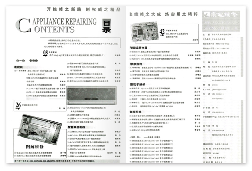 《家電維修》雜志收錄了很多大學者的文章,內容有深度,且有新鮮感,讀了之后,增加了許多新知。雜志著重理論聯系實際,提高與普及并重。我是推薦閱讀和收藏的。