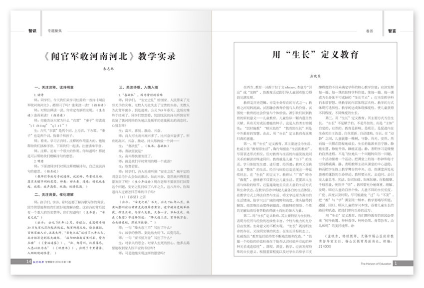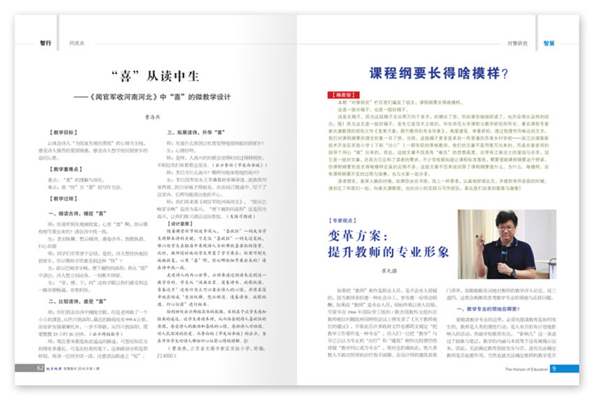 《教育視界》主要欄目:教材研究、名家在線、深度解讀、教法例談等。