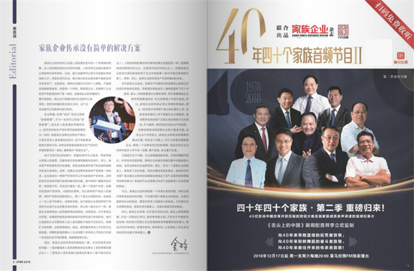《家族企業》(月刊)創刊于2015年,多年來雜志內容及形式方面與時俱進,并以其形式和內容的豐富性及多樣性,贏得了不同階層讀者的喜愛與擁護。有“治業、修身、齊家、益天下”四大版塊,秉承只有中國的傳承才能傳承中國。