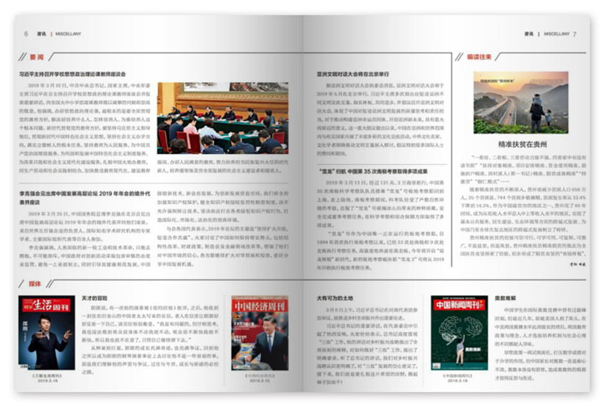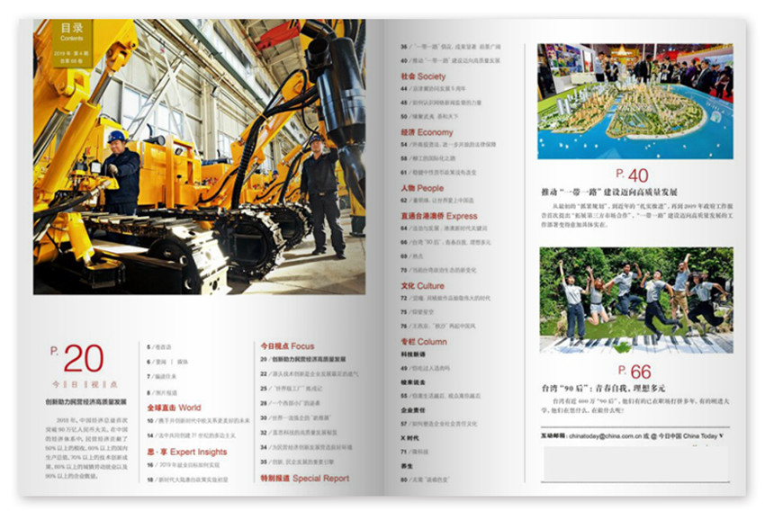 《今日中國(guó)》主要欄目:特別視點(diǎn),經(jīng)濟(jì),人與社會(huì),旅游天地等。