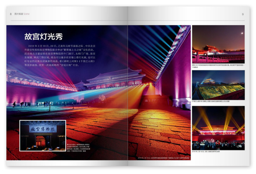 故宮燈光秀,2019年2月19日、20日,己亥年元宵節(jié)來(lái)臨之際,中共北京市委宣傳部和故宮博物院聯(lián)合舉辦“紫禁城上元之夜”文化活動(dòng)?;顒?dòng)地點(diǎn)主要安排在故宮博物院的午門(mén)展廳、太和門(mén)廣場(chǎng)、故宮東城墻、神武門(mén)等區(qū)域。觀眾可以漫步在宮墻上看燈光展,也可以聽(tīng)專業(yè)的民族樂(lè)團(tuán)演奏的戲曲,看《清明上河圖》《千里江山圖》等美妙畫(huà)卷,欣賞一次高規(guī)格的“宮廷巨制”燈會(huì)。