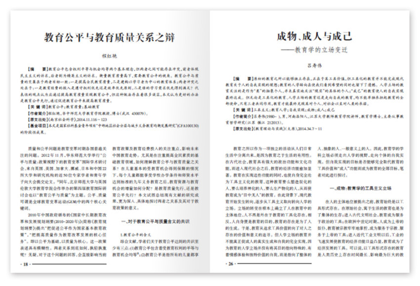 《復印報刊資料·教育學》(月刊)創刊于1958年,多年來雜志內容及形式方面與時俱進,并以其形式和內容的豐富性及多樣性,贏得了不同階層讀者的喜愛與擁護。教育學是一門研究人類的教育活動及其規律的社會科學,它廣泛存在于人類生活中,通過對教育現象、教育問題的研究來揭示教育的一般規律。