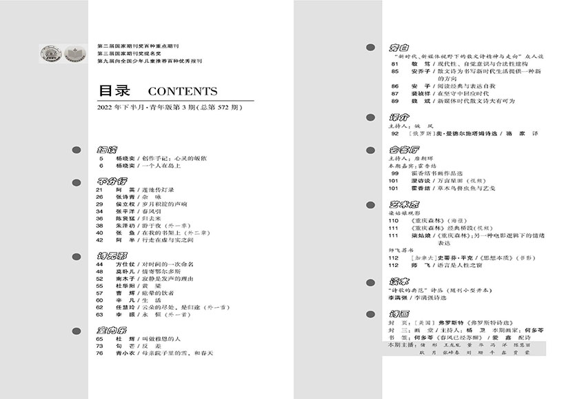 “青春書”是雜志發掘新人的重要窗口,專門刊發青年詩人、在校學生的原創散文詩作品,鼓勵年輕一代以真摯的情感與獨特的視角介入寫作,為散文詩注入新鮮血液與活力。該欄目常配合年度“青年散文詩獎”等評選活動,形成發現、培養、推介新人的完整機制?!白x本”則以專題形式策劃經典重讀或主題閱讀,如“魯迅散文詩研究專輯”“鄉土散文詩十家”“城市書寫中的詩意”等,通過系統編排引導讀者深入理解散文詩的文學傳統與當代發展。