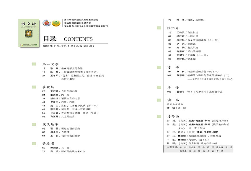 《散文詩》主要欄目:第一文本、在現場、銀河系、詩話、譯介、交叉地帶、青春書、讀本、詩與畫