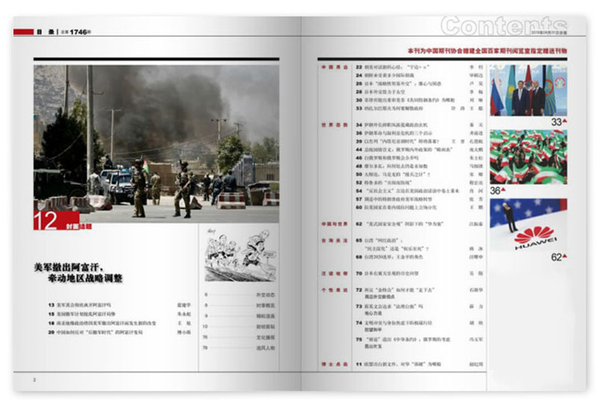 《世界知識》主要欄目:封面話題、世界態勢、中國與世界、中國周邊、等。