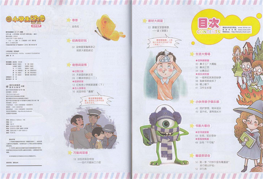 《世界兒童·小學生閱讀》主要欄目:經典小書閣、美文淘寶店、課文連連看、讀寫夢工廠、歡樂QQ堂、開心雙語園。