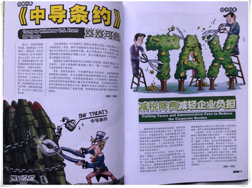 全球漫畫時事博覽月刊,風味獨特,個性鮮明,是輕松閱讀國內外趣聞、科技新知、傳奇八卦好刊物,用看動漫的感覺看時事,沒有枯燥呆板的新聞報道,只有強烈可讀性且圖文并茂的時事童話故事、時事懸疑驚險小說、時事卡通漫畫。