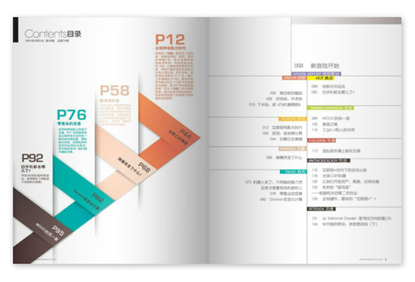 主要欄目:封面、編者的話、專欄、特別策劃、變量、寶貝健康、罷了、O2O論壇、創新潮流、焦點行業、先鋒、方法、商學院、態度、東張西望等。以中國商業界的變革者為讀者群,特別關注技術與網絡推動的商業變革,關注商業創新激發的產業趨勢,關注企業的持續發展以及承擔的社會責任,是中國的技術商業媒體。