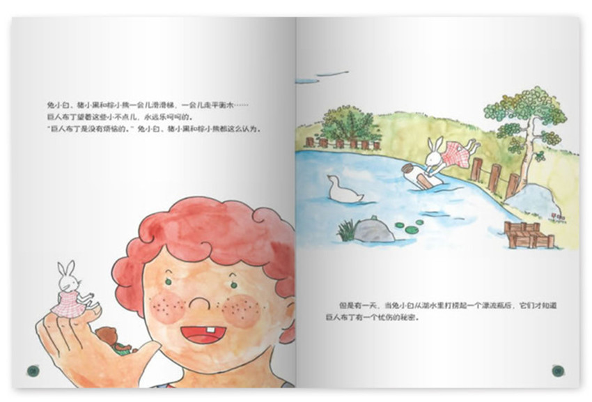 地瓜出生在亂哄哄的菜園里。地瓜喜歡一個人待著,天馬行空地想象。遠處傳來歌聲,地瓜幻想自己趕著大篷車,彈著吉他,四處流浪。下雨了,地瓜看見每個雨點上都騎著一個精靈披著不同的斗篷,佩著不同的兵器,互相比拼。地瓜敲著圓鼓鼓的肚皮,給雨點們擂鼓助威。地瓜幻想自己生出翅膀,跟水牛兒一起飛到樹梢。