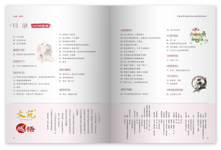 《文苑》(月刊)創刊于2005年,多年來雜志內容及形式方面與時俱進,并以其形式和內容的豐富性及多樣性,贏得了不同階層讀者的喜愛與擁護。通過對傳統思想、觀念、觀點的顛覆、能提出彰顯時代氣息的見解。細節決定成敗,點滴見人智慧。用新穎的視角、獨特的思維發現解決問題、取得成功的方法。