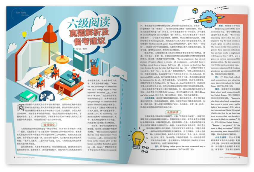《新東方英語》主要欄目:考試手冊、學習頻道、精選時文、讀有所悟、聽說天地、專欄等。