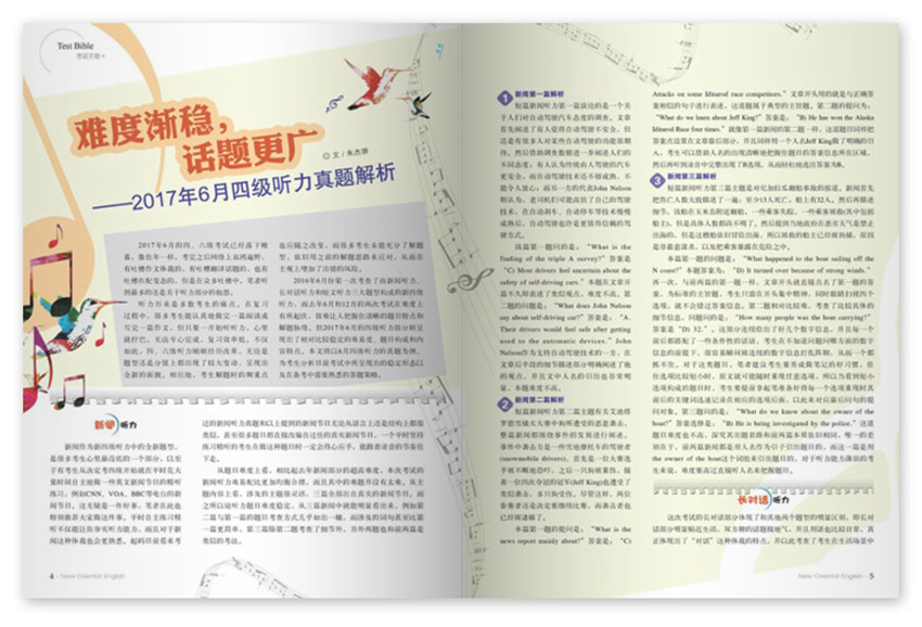 難度漸穩話題更廣,2017年6月的四、六級考試已經落下帷幕,像往年一樣,考完之后網絡上哀鴻遍野,有吐槽作文體裁的,有吐糟翻譯話題的,也有吐槽匹配變態的,但是在眾多吐槽中,筆者聽到多的還是關于聽力部分的抱怨,聽力歷來是多數考生的痛點。在復習過程中,很多考生能認真地做完一篇閱讀或寫完一篇作文,但只要一開始聽聽力,心里就擰巴,無法專心完成,復習效率低。