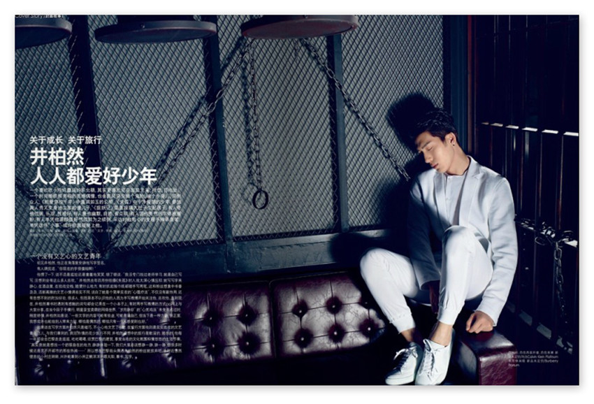 井柏然人人都愛好少年,一個喜歡吃小雞燉蘑菇的東北萌,其實(shí)更喜歡宅在家里發(fā)呆、放空、打電動;一個時尚圈頻頻亮相的質(zhì)感偶像,也會畫風(fēng)突變做個鬼臉、編個小曲兒,笑倒眾人;《相愛穿梭千年》中溫潤如玉的公明、《失孤》中干凈俊朗的少年,參加真人秀又變身地主家的傻兒子,《捉妖記》里直接搞大肚子生起孩子。有人夸他低調(diào)、樂觀、性格好,有人愛他幽默、自然、有點(diǎn)萌,有人因他秀氣的字體被圈粉,有人單憑他高顏值好氣質(zhì)就為之傾倒,采訪時他貼心的全程手捧錄音筆,單憑這件“小事”或許你就能愛上他。