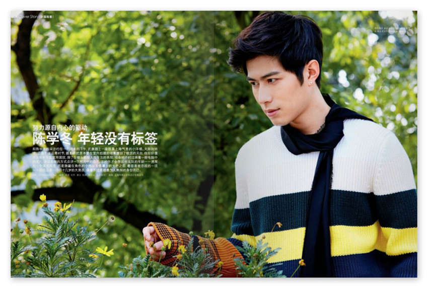 陳學(xué)冬,年輕沒有標(biāo)簽,和陳學(xué)冬的采訪約在一個周末的下午,武摩路上一座很具上海氣息的小洋樓。天剛剛轉(zhuǎn)晴,正是乍暖還寒時節(jié),攝影師把原本要在室內(nèi)拍攝的場景挪到了樓頂?shù)奶炫_,他卻好像并沒有太為溫度所困擾,除了在鏡頭前投入而專注的表現(xiàn),也會時不時過來看一眼電腦中的成片,并以自嘲的方式點(diǎn)評一下照片中的自己,這時你才會想起他實(shí)際的年齡——通常對一個演員而言,那是隱藏在角色的個性以及銀幕上的光芒之后,容易被忽視的一項(xiàng)——到底還是一個二十幾歲的大男孩,偶像不過是他為人熟知的身份而已。