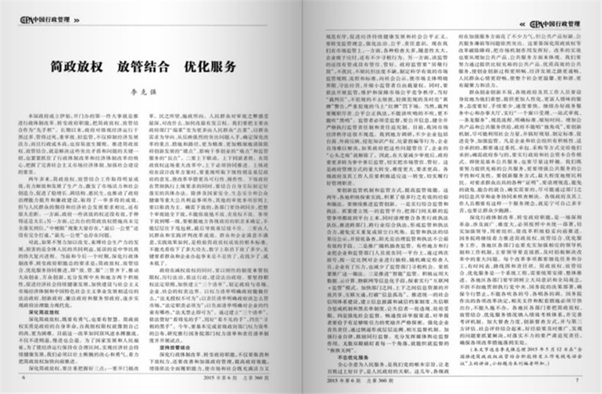 《中國行政管理》雜志是由國務院辦公廳主管,中國行政管理學會主辦,是新中國成立后創辦的第一本研究行政管理的專業刊物,是反映政府行政管理理論與實踐的北大圖書館收錄期刊,也是目前我國行政(公共)管理學科大型綜合性期刊,被北大圖書館收錄期刊要目總覽列為“政治學類”第一位、“管理學類”第一位。2012年入選國家社科基金學術期刊首批資助名單(批準號12QKA095)。