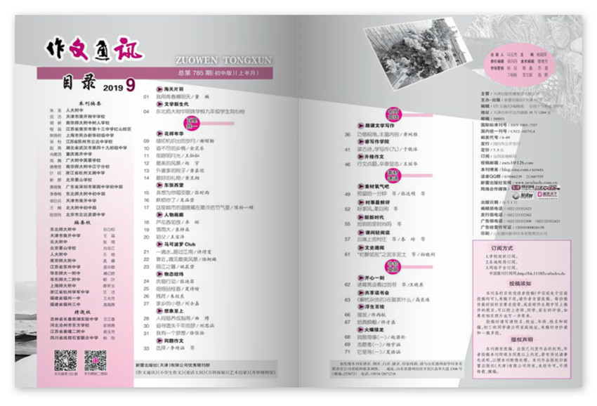 《作文通訊》(月刊)創(chuàng)刊于1979年,多年來雜志內(nèi)容及形式方面與時俱進,并以其形式和內(nèi)容的豐富性及多樣性,贏得了不同階層讀者的喜愛與擁護。時事與作文全新接觸,引領(lǐng)作文新風(fēng)潮;系統(tǒng)應(yīng)考,科學(xué)北站考試作文;敞露胸懷,盡展個性與創(chuàng)意。