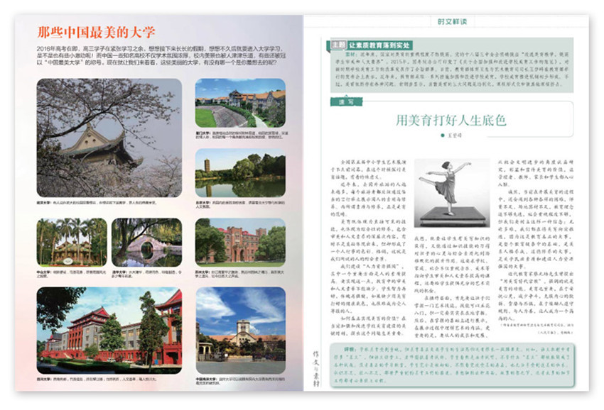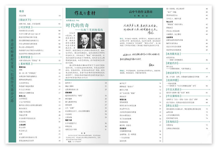 《作文與素材》雜志是以指導高中學生積累運用素材為主的作文輔導類中文版圖書,連續多年押中多地高考作文命題內容。她按照實用、新穎、個性、快速的宗旨,向你傳遞各類關于高中作文方面的最新信息,為你提供一體化的作文寫作方案,實為廣大高中學生豐富知識,拓展視野的寶典。